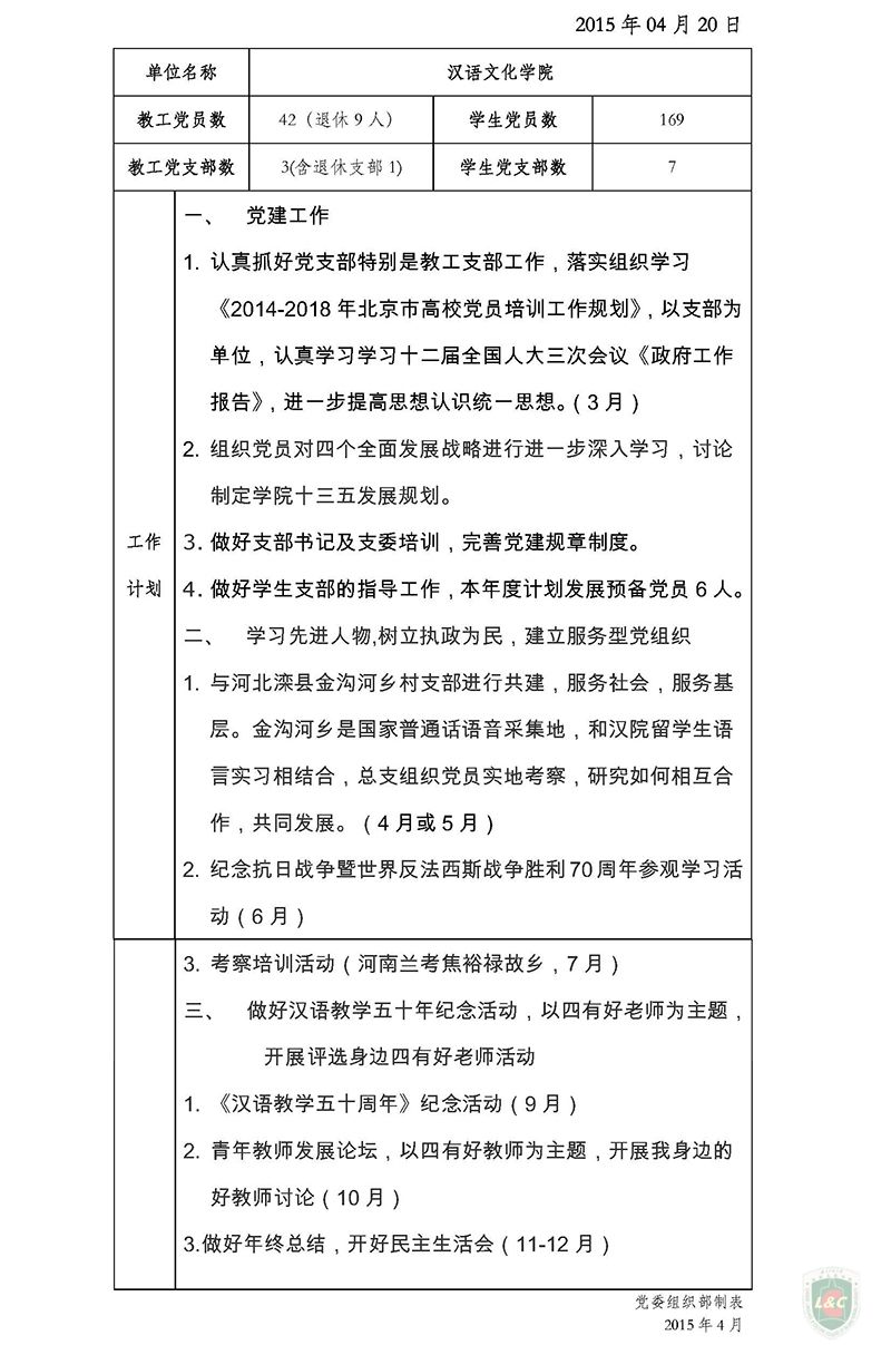 太阳成集团tyc234cc汉语文化公司2015年党总支工作计划表