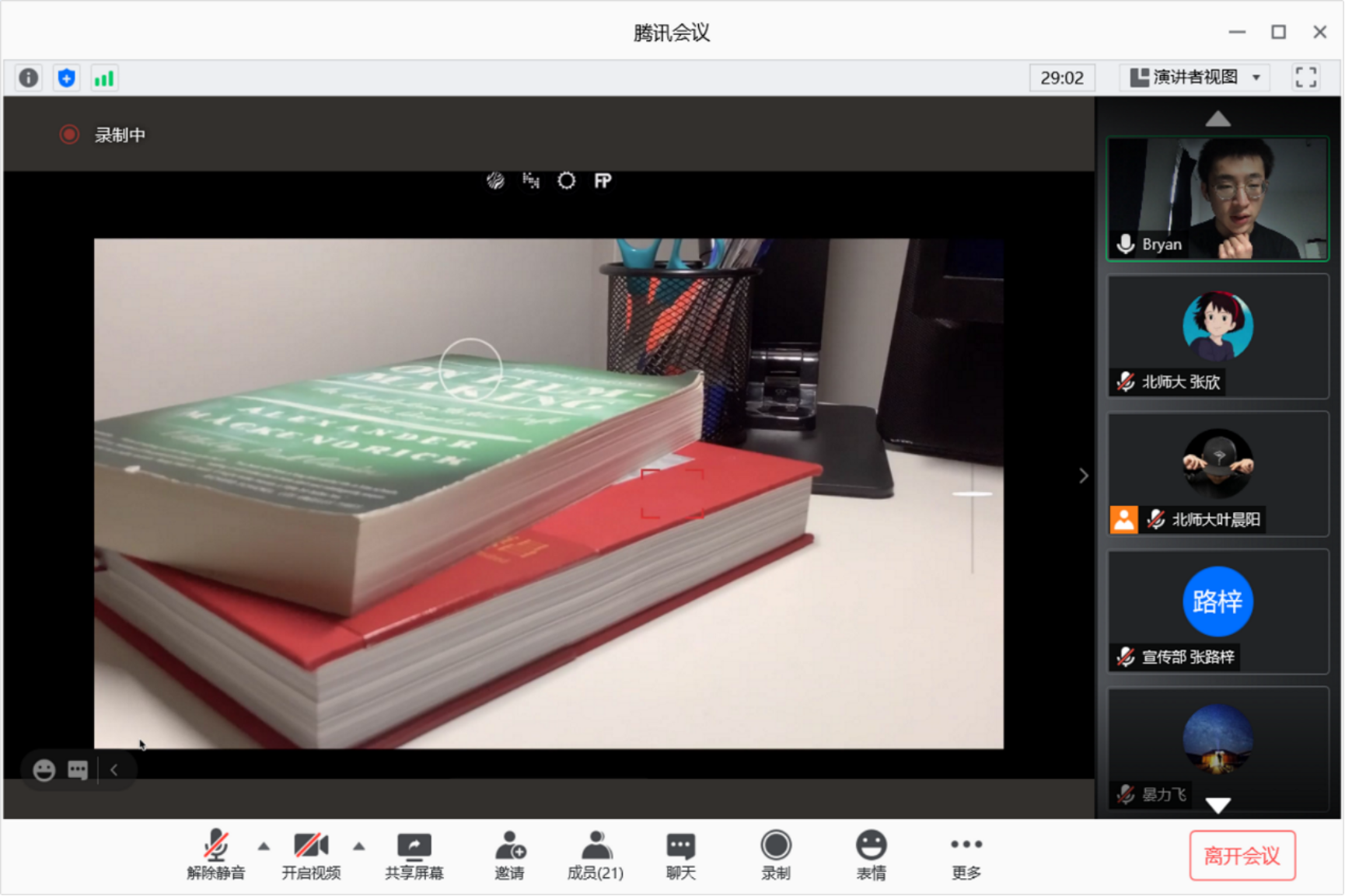第二位邀请到的嘉宾是荷兰格罗宁根大学市场营销硕士付梦圆老师,老师从Vlog的拍摄设备、选题和运营三个板块进行讲授,提醒同学们要根据不同的拍摄主题和场景选择合适的风格,善于利用目前流行的视频传播平台进行运营,在此过程中要对自己有精准的定位、打造个人IP,逐渐掌握粉丝运营技巧。最后她还谈到了自己的拍摄收获,让自己能够有勇气跳出舒适区,尝试新鲜的事物。