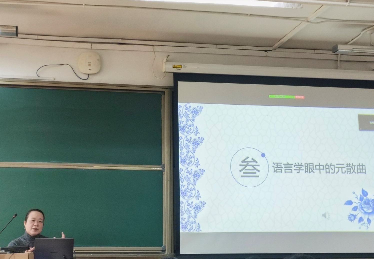 下午13:30,由汪琦老师主讲的“古典诗歌与汉语国际教育——以元散曲为例”讲座在北京校区顺利展开。汪老师分别就为什么要了解元散曲、什么是元散曲、语言学中的元散曲和海外教学中的困惑四个主题进行了讲解。