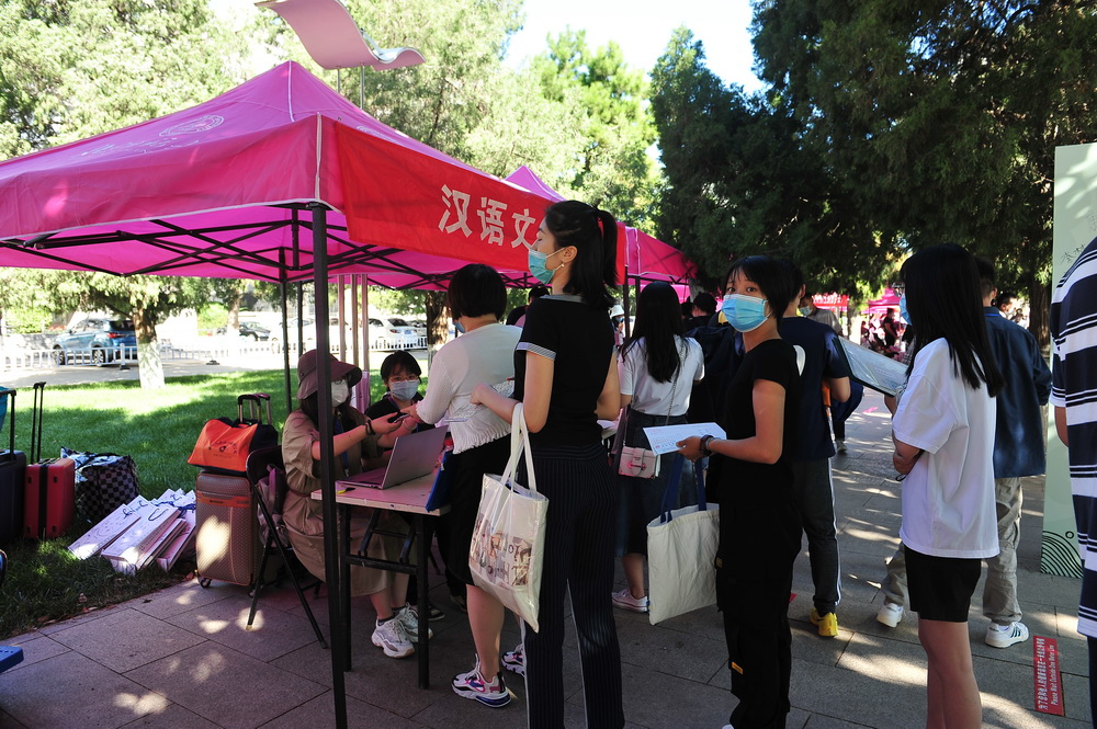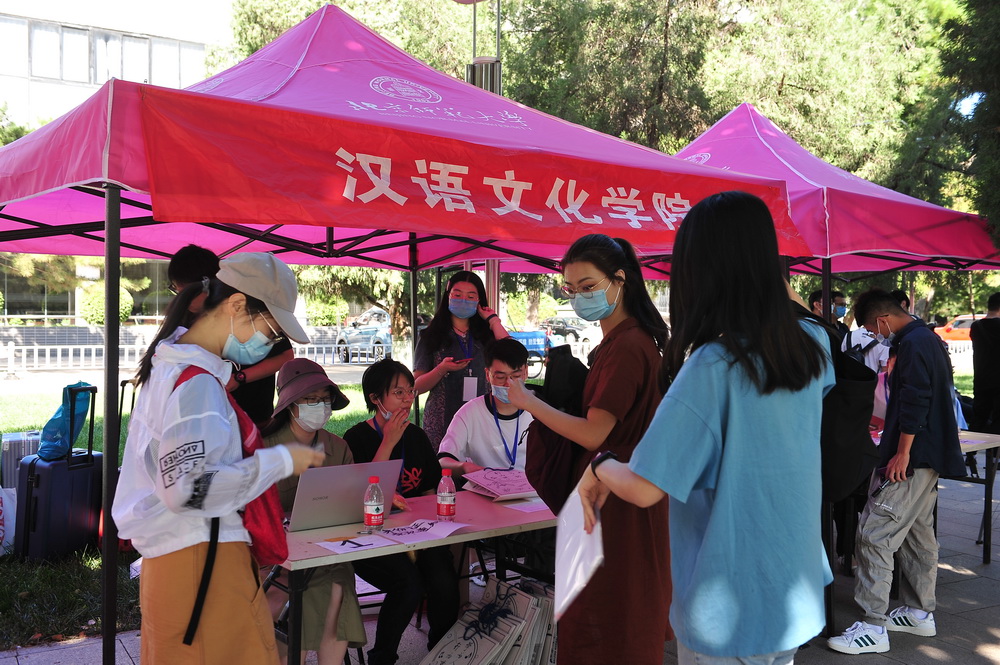 汉语文化公司党委书记王学松、副书记任雅才等到现场迎接新同学。