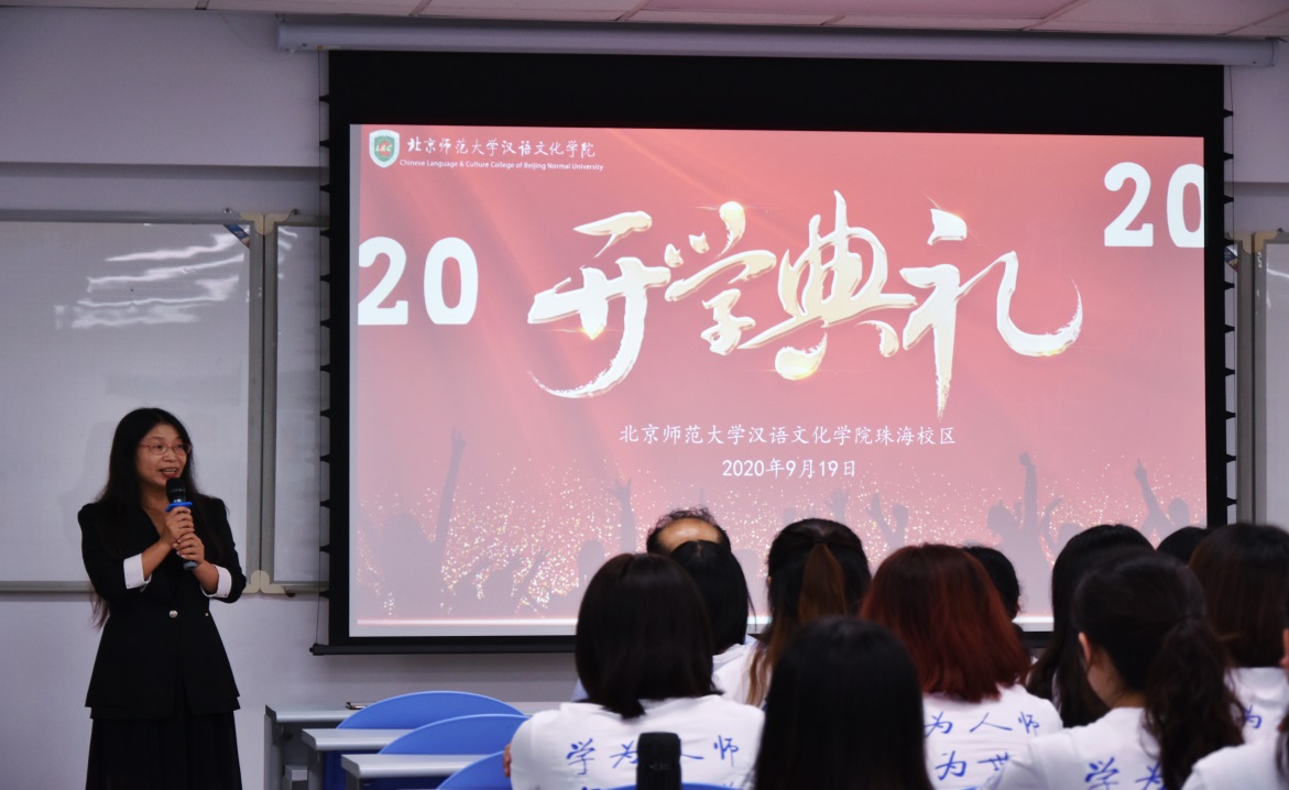 9月19日下午,太阳成集团tyc234cc汉语文化公司2020级新生(珠海校区)开学典礼在励教楼D306成功举行。汉语文化公司党委书记王学松老师、副经理李炜东老师、副经理汝淑媛老师、教师代表冯丽萍老师、李彤老师、吴成年老师、刘兰民老师出席了此次开学典礼。盛双霞老师担任主持人。