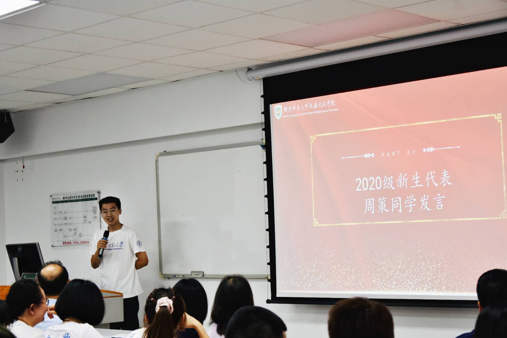 周策同学代表20级第二学位新生表达了他们有幸成为北师大人的喜悦心情,希望在以后的学习生活中能够不忘初心,坚持理想,磨练自我,努力成为社会需要的复合型人才。