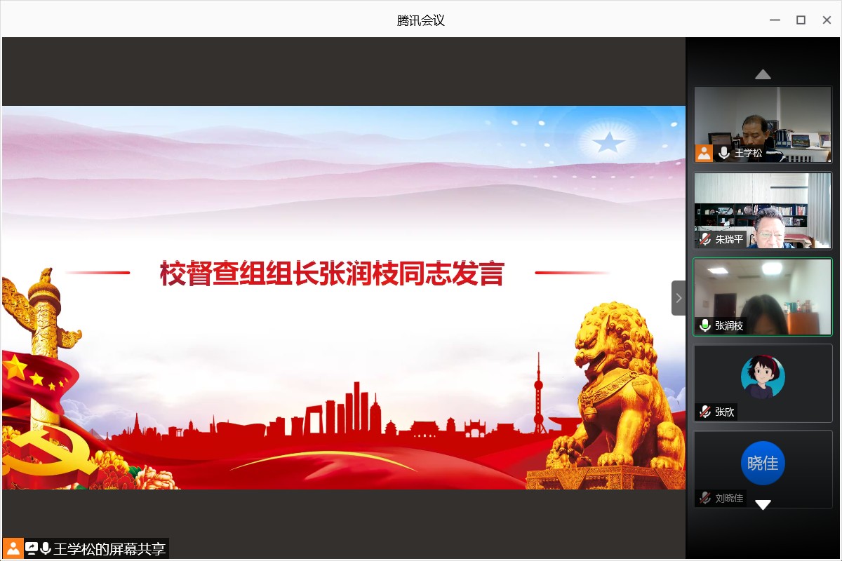 会议第一项为张润枝老师发言。张老师介绍了督查工作的目的、内容、方式与纪律。本次专项督查重点涉及以下几个方面:1、各学部院系党委发挥政治核心作用,落实基层党建主体责任情况;2、党政联席会议和党委会制度执行情况;3、学习贯彻落实支部条例,加强支部标准化、规范化建设情况;4、“不忘初心,牢记使命”主题教育成果巩固深化情况。