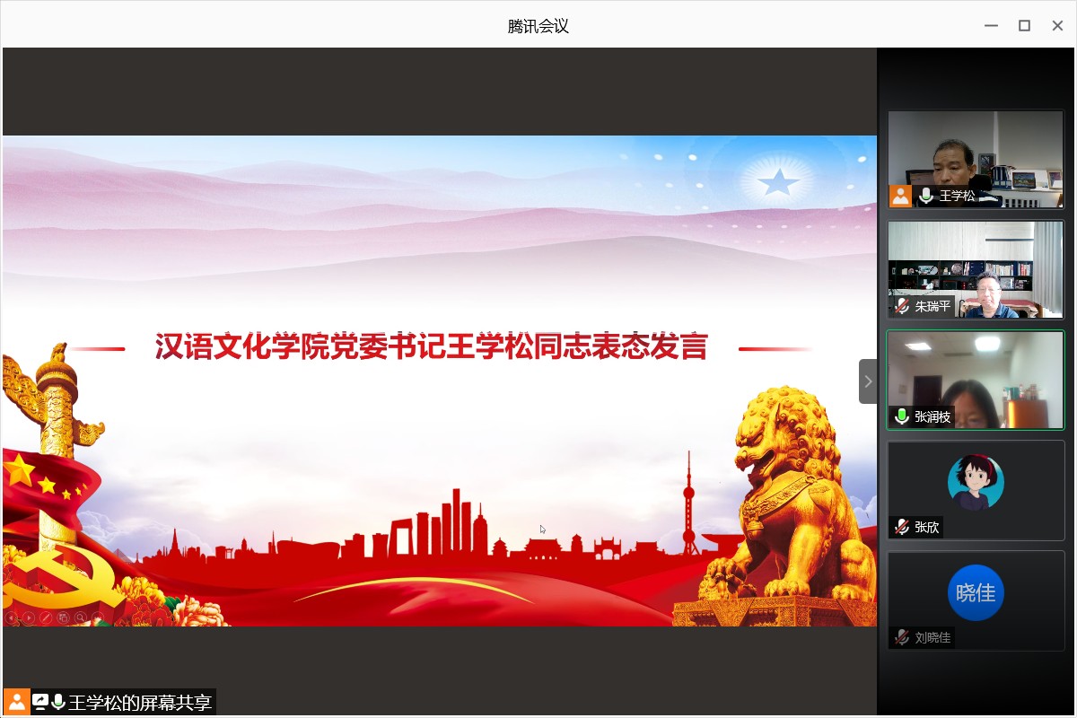 随后,王学松老师代表汉语文化公司全体老师进行了表态发言。汉院全体在此次督查工作中,将认真学习和体会督查工作的重要性,抱着认真诚实、自我解剖的态度,积极配合督察组的各项工作,争取在督察组的帮助下,发现并改正问题。