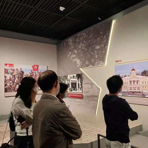 2021年是中国共产党建党一百周年,在这百年华诞之际,为向党的一百岁生日献礼,5月14日上午,汉语文化公司组织党员参观《伟大征程——庆祝中国共产党成立100周年特展》,重温中国共产党辉煌奋斗征程,传承中国共产党伟大奋斗精神。公司党委书记王学松老师、党委副书记任雅才老师、副经理李凤林老师、副经理汝淑媛老师以及各支部师生党员30余人参加了此次活动。员工党员邹馥谦担任讲解员,带领大家一同回顾中国共产党的一百周年光辉历程。