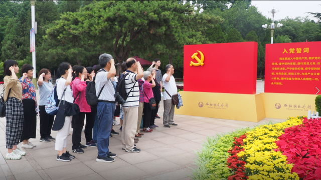 最后,师生们在西柏坡纪念馆前的党旗和党徽下庄严宣誓,重温入党誓词。铿锵有力的誓词振奋着在场每一位宣誓人的心,同时也是汉语文化公司师生党员对党和国家的红色教育事业做出的坚定承诺。