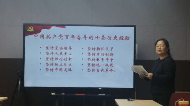 中心组成员集体学习了《中国共产党第十九届中央委员会第六次全体会议公报》。李凤林老师带领大家围绕十九届六中全会精神,系统梳理了新时代中国特色社会主义的十三个伟大成就,全面概括了百年历程实现的四个“伟大飞跃”,重点强调了中国共产党百年奋斗的五方面历史意义,深入总结了党百年奋斗的十条宝贵历史经验。
