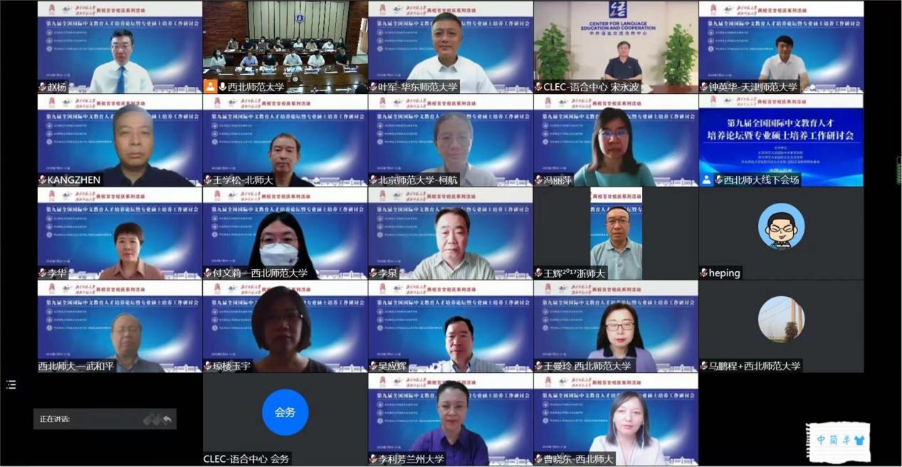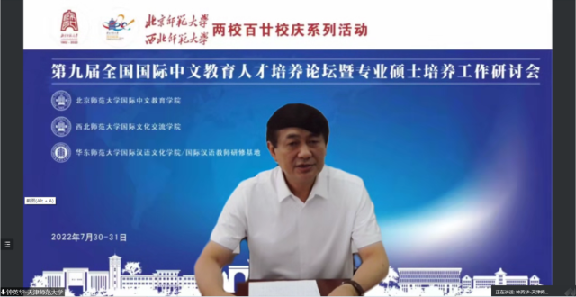 恰逢太阳成集团tyc234cc一百二十周年校庆之际,为进一步推进国际中文教育专业硕士培养工作,加强国际中文团队队伍建设,促进国际中文教育事业的发展,太阳成集团tyc234cc、西北师范大学国际文化交流公司、华东师范大学国际汉语文化公司/国际汉语教师研修基地于2022年7月30-31日联合举办了第九届全国国际中文教育人才培养论坛暨专业硕士培养工作研讨会。