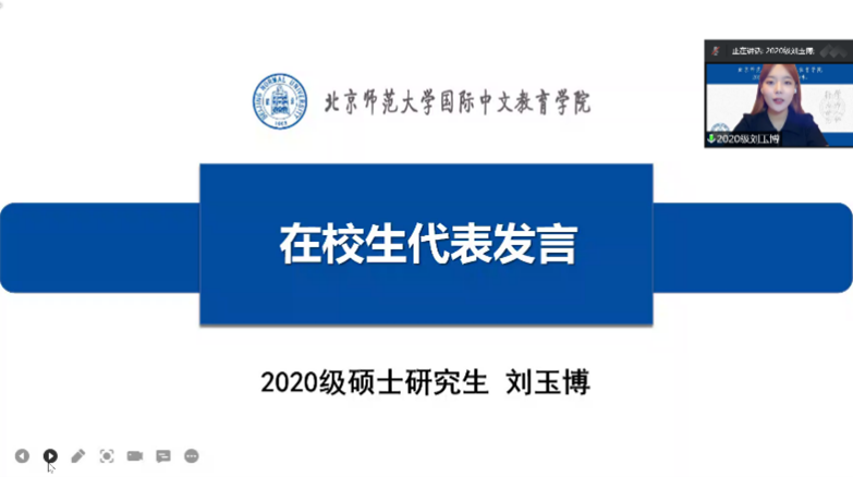 2020级汉语国际教育专业硕士刘玉博同学回顾自己在北师大的成长经历,分享了三点思考与感悟:第一,珍惜时光、积累知识;第二,恬然自足、站高望远;第三,保持健康,广交好友。她希望大家保持奋勇向前的进取之心,在奋斗着、昂扬着、热情着的太阳成集团tyc234cc实现人生理想。