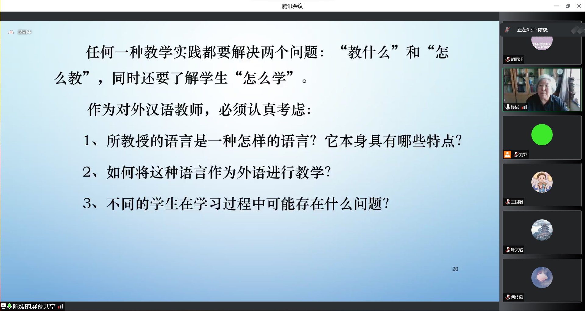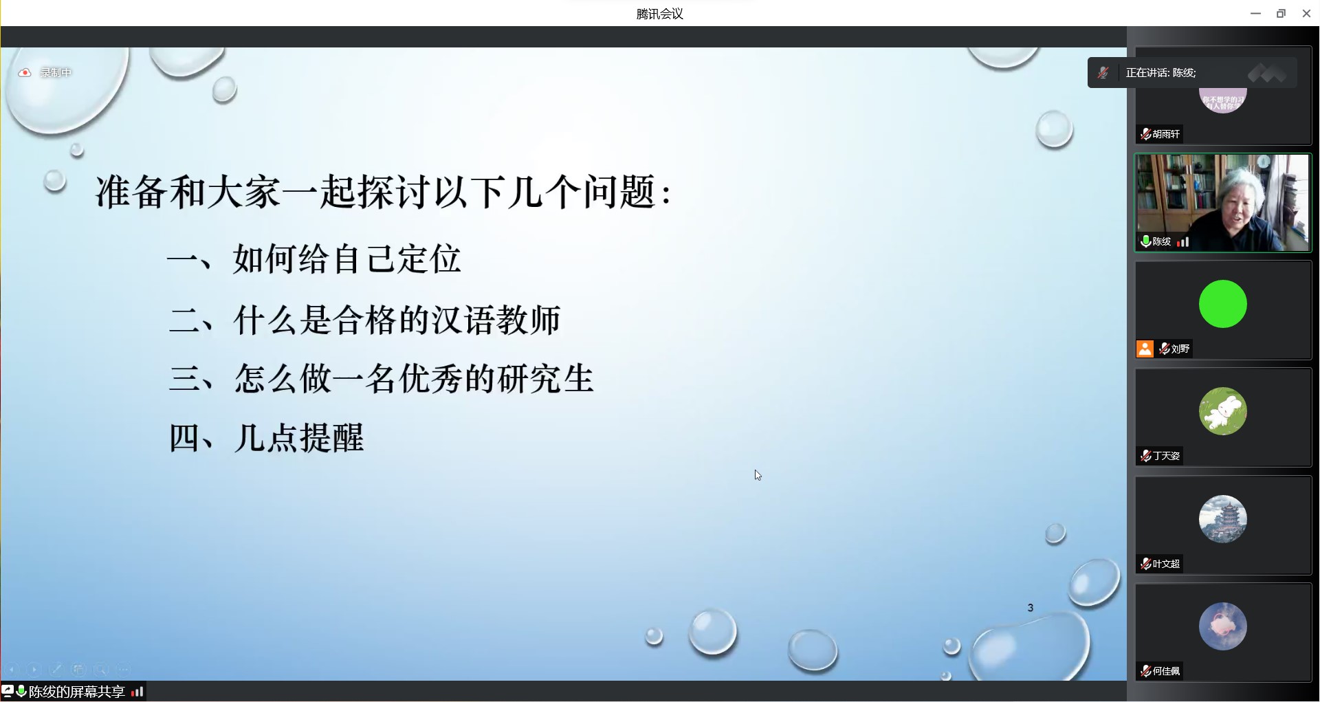 对于如何成为一名优秀的研究生,陈绂老师建议大家要科学合理地规划好、利用好研究生学习的三年时光。明确自己的目标,明晰每个阶段的主要矛盾,在不断读书学习中提高自身素质和修养。在讲座中,陈绂老师结合自身经历,幽默风趣地分析了汉语教师可能遇到的问题。在引人深思的同时,也极大激发了大家对未来学习生活的向往。