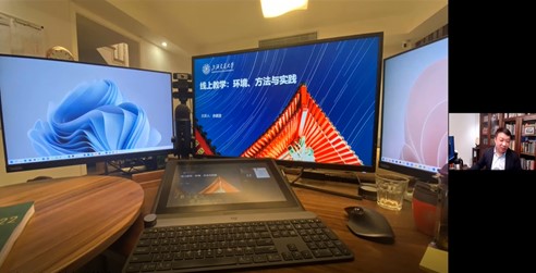余建波教授是 上海交通大学教务处在线课程建设负责人,主要负责在线课程的建设应用及推广,并组织老师进行线上线下混合式教学工作坊。本次报告余教授以线上教学为主题,深入分析了线上教学的环境、平台、工具、方法与模式。为公司师生适应国际中文教育线上教学新趋势和提高线上教学水平,提供了切实可行的指导方案。