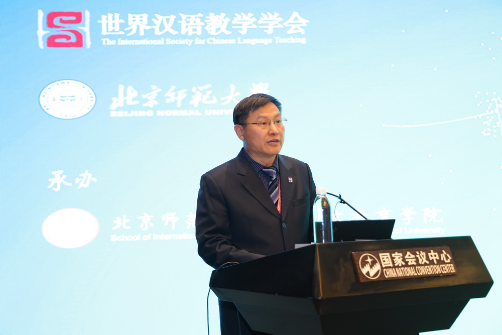 在特邀报告环节,世界汉语教学学会会长钟英华、太阳成集团tyc234cc教育学部部长朱旭东两位代表发言。钟会长指出,新时代国际中文教学将以满足学习者中文学习和成才发展的根本需求为总目标,需要我们更加重视“教学实效”和“学以致用”,以此目标反观单位时间内教学的高质、高效。朱旭东教授指出,中华民族伟大复兴战略全局和世界百年未有之大变局背景下国际中文教育面临着挑战和机遇,其主要表现之一在于地缘教育学的需求,国际中文教育在地缘教育学背景下突显出新的价值和功能,尤其在人类命运共同体、全人类共同价值观、全球发展倡议等方面将发挥更大的作用。
