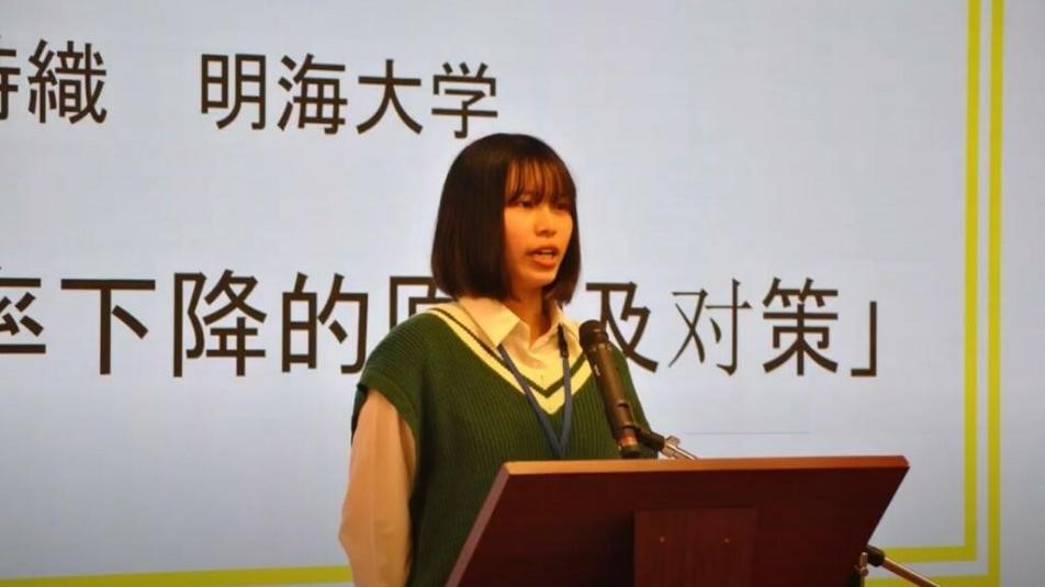 细川同学今年参加了两个大赛。2022年10月22日,她在第2届日中老员工演讲交流会上获得外务大臣奖第一名和日中友好协会奖第一名。这次比赛由日中友好协会主办,主办方从日本全国遴选出12名日本老员工和12名中国职工组成对子,之后这一对对选手将进行3个月的在线交流,练习、准备,然后在正式比赛中展示并竞争。细川同学与名古屋大学的中国职工张翔喻同学成为一对组合,她们合作进行了“日中两国出生率下降的原因及对策”的演讲,夺得了冠军。