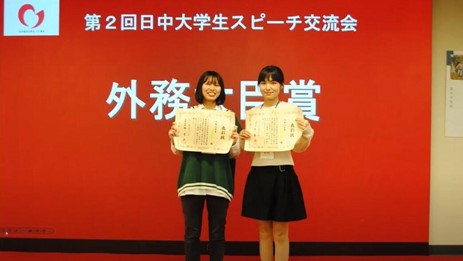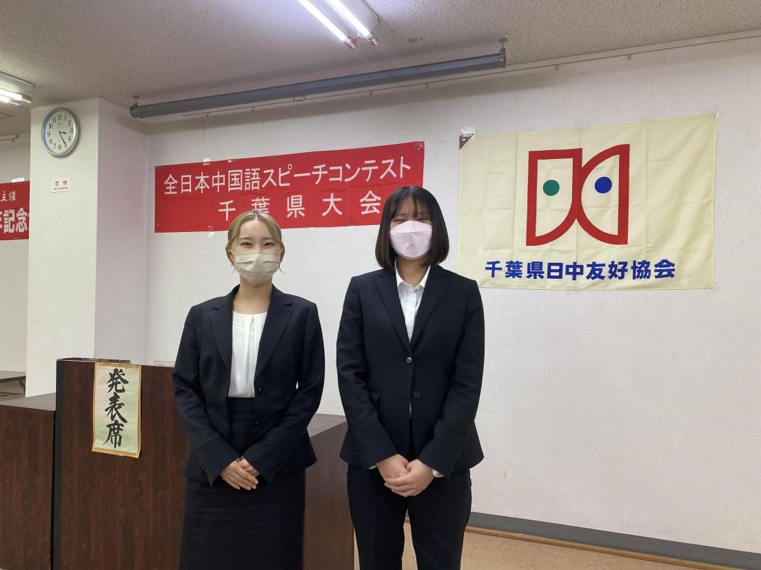 和她一同参加比赛的还有明海大学中国语学科二年级员工佐藤音羽同学。在老员工组中,佐藤同学以抑扬顿挫、充满表现力的汉语,在与其他出场者的激烈竞争中获胜,并获得了船桥市长奖。两位同学同时还获得了代表千叶县参加全国大赛的资格。