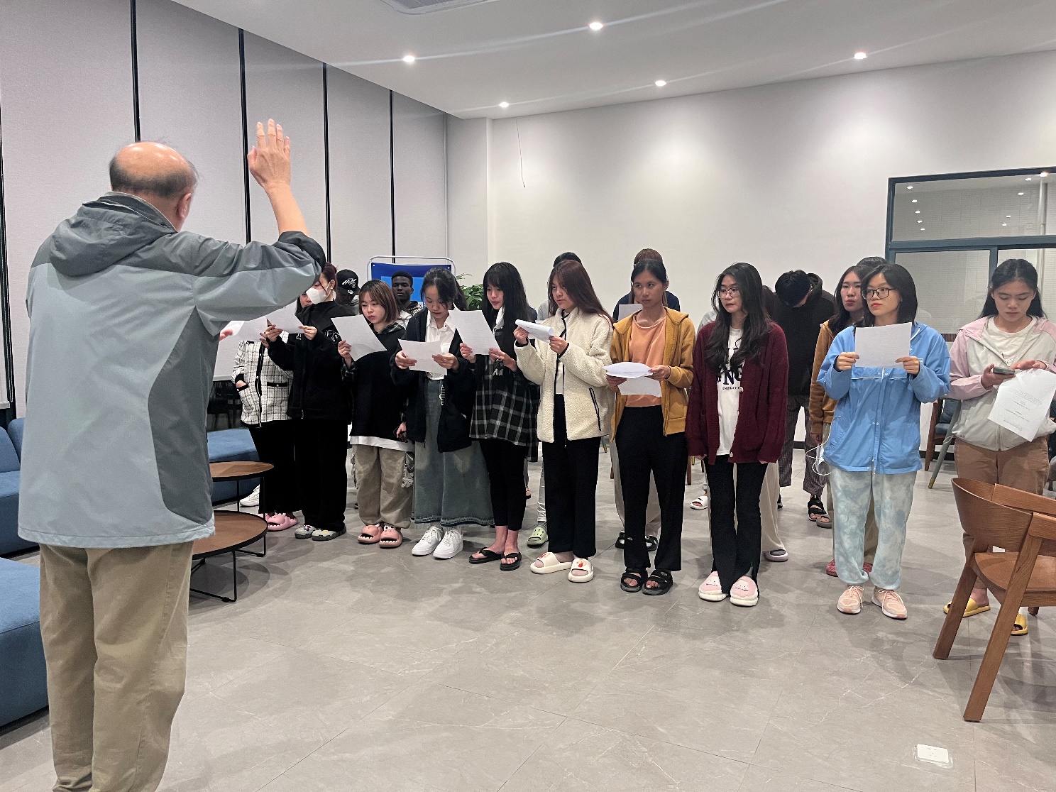 (北师大亚太实验公司诵读培训排练现场)
