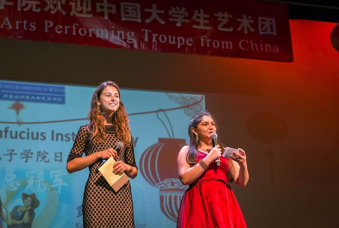 本次活动由获得2017年“汉语桥”世界中员工中文比赛全球总冠军的黄秋月(旧金山州大孔院下属孔子课堂员工)和江明晰(原圣地亚哥州大孔院下属孔子课堂员工、现斯坦福大学员工)担任主持。旧金山州大孔子公司经理谢家新、旧金山州立大学协理副董事长Maria Martinez、厦门大学艺术公司经理兼信息委员会主席何元赞致辞。