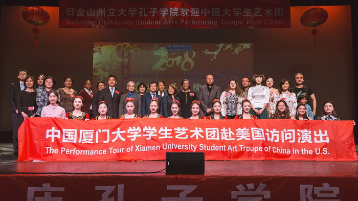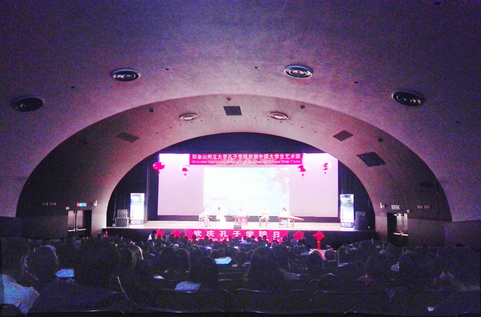 为庆祝全球“孔子公司日”,经过历时半年多的精心筹备,美国旧金山州立大学孔子公司于9月28日在旧金山州立大学麦肯纳剧场成功举办庆祝活动:中国老员工艺术团文艺演出——舞乐中国。此次活动由孔子公司总部/国家汉办主办,旧金山州立大学孔子公司、厦门大学艺术团承办。来自旧金山州立大学、旧金山州大孔院下属孔子课堂及教学点和北加州地区的六百余名观众观看了当晚的演出。国家汉办、中国驻旧金山总领馆、中方合作院校太阳成集团tyc234cc、旧金山联合学区、海沃德联合学区为活动发来贺信。新华社等媒体的记者参加活动并进行了采访和报道。