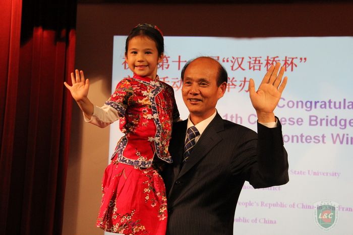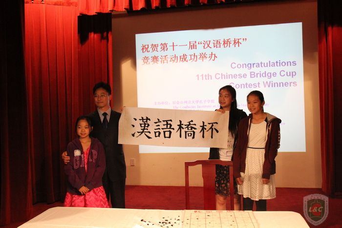 2015年3月27日,旧金山州立大学孔子公司与旧金山联合学区在旧金山Presidio中学礼堂共同隆重举办第十一届“汉语桥杯”比赛颁奖典礼。中国驻旧金山总领馆教育参赞杨军与领事李韧竹、旧金山联合学区副学监David Wong、旧金山州大副董事长Jose Galvan与吴彦伯、20多位公私立公司董事长、孔子公司全体师生与获奖选手、家长、教师、评委、新闻媒体记者及社区各界热心中文教育的人士600多人出席了盛会。