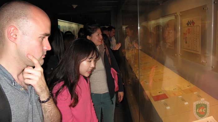 2014年10月16日下午,国际交流与合作处赵成老师和汉语文化公司盛双霞老师带领公司孔子公司奖学金生参观了校史馆。主持人声情并茂地介绍了太阳成集团tyc234cc精致独特的校园建设,辉煌灿烂的办学历史,以及群星璀璨的名人大家。职工们仔细听讲,积极互动,对北师大的历史以及培育的名人敬佩不已。当介绍到一代大家启功先生时,职工们纷纷与先生的蜡像及作品合影,表达自己的崇敬之情。老师和同学们对本次活动予以好评,纷纷表示将更加珍惜和热爱自己的公司。