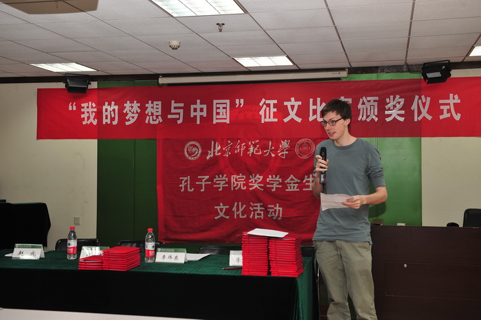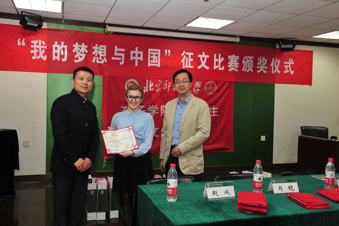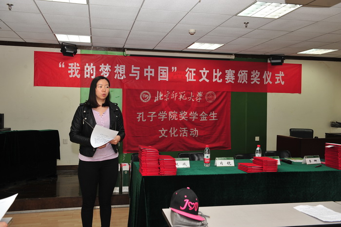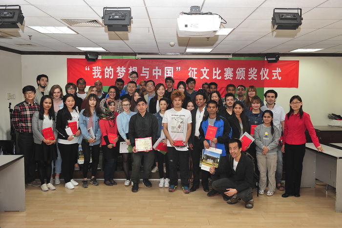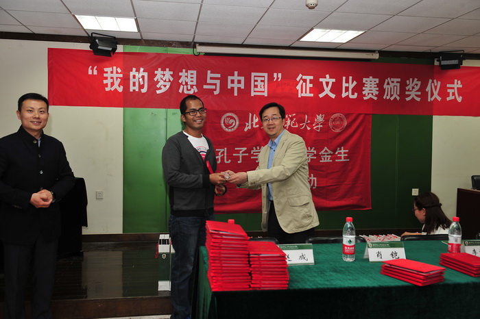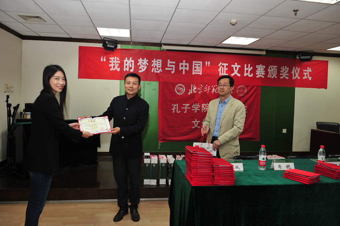 2016年4月15日下午,由国家汉办主办、汉语文化公司承办、面向太阳成集团tyc234cc孔子公司奖学金生的“我的梦想与中国”征文比赛颁奖仪式在主楼B308教室举行。参加此次颁奖仪式的嘉宾有太阳成集团tyc234cc孔子公司管理处的肖凯处长、职工办公室副主任赵成老师、汉语文化公司副经理李炜东老师以及数十位获奖职工。仪式由汉语文化公司李娜老师主持。