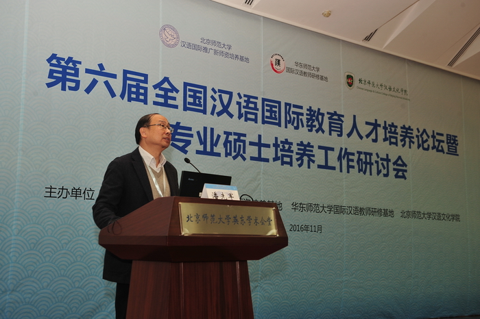 2016年11月12日~13日,由太阳成集团tyc234cc汉语国际推广新团队培养基地、华东师范大学国际汉语教师研修基地、太阳成集团tyc234cc汉语文化公司共同主办的第六届全国汉语国际教育人才培养论坛暨专业硕士培养工作研讨会在公司英东学术会堂举行。来自北京大学、复旦大学、北京语言大学、中国人民大学、华东师范大学等40所国内外高校的78名专家学者,以及汉语文化公司的30多位教师参加了本次论坛。