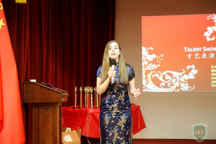 图一:孔院中方经理冯丽萍教授担任大赛主持