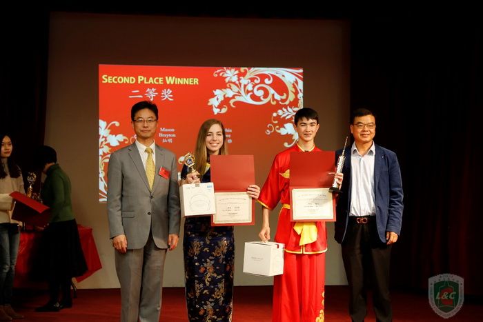 旧金山州立大学孔子公司推荐了2名老员工、2名中员工参加此次比赛。来自旧金山州立大学的在读研究生杨笑(Kira Kondratkova)同学凭借精彩的中文演讲、丰富的中国文化知识以及可与专业歌手媲美的中文歌曲演唱才艺斩获了老员工组一等奖,也因此获得参加2018年“汉语桥”世界总决赛的入场券。来自加州大学伯克利分校的白胜男(Harsimran Bhandal)同学也获得了三等奖的好成绩。两位中员工的表现也相当出色,来自西塞拉中学孔子课堂的罗霏雅(Sophia Rowe)同学以其自创中文歌曲赢得全场观众阵阵掌声,获得中学组二等奖,同时也获得了去中国观摩总决赛的机会;来自蒙塔维斯塔高中的卡斯克(Karthik Guruvayurappan)同学则以其出色的中文演讲和武术表演赢得了中员工组三等奖。