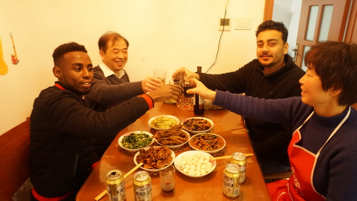“千门万户曈曈日,总把新桃换旧符”。春节是中国民间最隆重的传统节日,活动丰富多彩,带有浓郁的民族特色。1月27日,即农历腊月三十,职工们到中国家庭一同欢度除夕夜。学包饺子、准备年夜饭、抢红包、看春晚、串门拜年,跟随中国家庭体验最原汁原味的春节文化。同学们第一次包饺子,学习和面、擀皮儿、捏成饺子的形状,同学们参与兴致颇高,加深了与中国家庭的交流,对春节文化有了更多感性的认识。