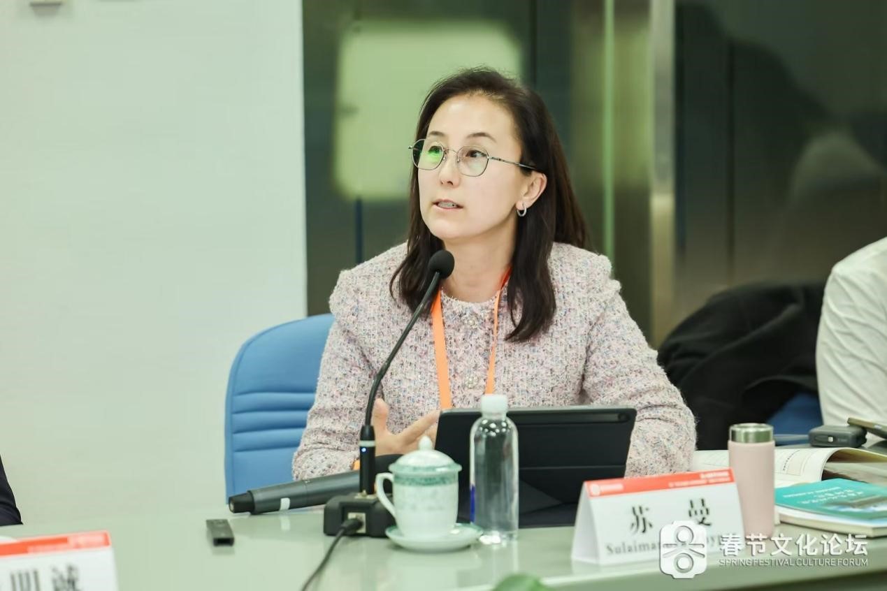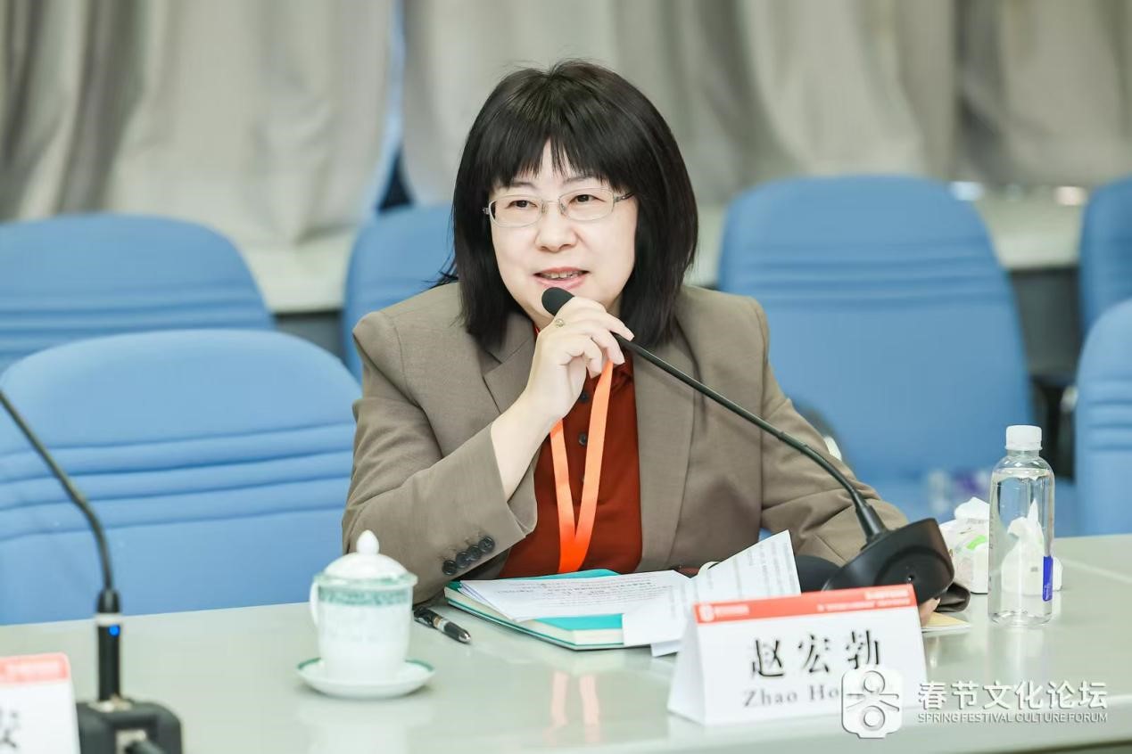 公司承办的第六分论坛主题为“春节文化与国际中文教育”,受公司委托,公司宋志明教授、赵宏勃副教授参与了分论坛的筹备工作,并共同主持了论坛发言。中华文化研究院丨京师书院副经理肖铠参加了论坛研讨。上半场,赵老师首先全面介绍了公司开展国际中文教育的各项工作,之后柬埔寨皇家科公司秘书长杨博(Yang Peou)以《中国春节文化融入柬民众生活》为题,绘声绘色地讲述了春节文化融入柬埔寨普通民众生活的鲜活事例,展现了中柬人民在春节庆典上的民心相亲。宋志明教授以《春节仪式的“复合性”及其国际传播》为题,指出春节仪式具有鲜明的“复合性”,春节文化国际传播的主体是海外华侨华人,提炼春节仪式、符号意义、打造春节文化产品是进一步实现春节国际化的有效路径。北京大学新闻与传播公司教授陆地报告的题目是《春节文化与周边传播》,他以“周边传播”理论为基础,强调春节文化国际传播的若干原则,如应该尊重当地文化等。温州大学华侨公司游红霞教授的报告是《春节文化国际传播赋能海外侨胞中华民族共同体意识培育的机理与路径》,介绍了“浙里有爱”海外慰侨活动,分析了春节文化国际传播对于树立海外侨胞中华民族身份认同的积极作用,并指出春节文化国际传播中存在的一些现实挑战。来自国内外高校的中外硕博研究生、博士后也就春节文化在不同国家、不同文化背景下的传播以及语言文化交流情况发表了报告,内容包括春节文化在波兰的传播,尼日利亚纳姆迪·阿奇克韦大学孔子公司的春节文化活动及其跨文化传播效果,春节文化在伊斯兰国家的国际中文教育中的应用等。与会者还分享了吉尔吉斯斯坦本土中文教师的职业选择动因与职业认同研究、韩国工艺类非物质文化遗产的保护、中国职工在海外的春节庆祝仪式、非遗技艺如何“出海”等内容。整体而言,分论坛的报告内容丰富,既有对于春节文化国际传播的理论思考,又紧密结合了不同区域文化交流对春节文化内容呈现的个性化需求,体现了春节文化国际化传播中的机遇与挑战。