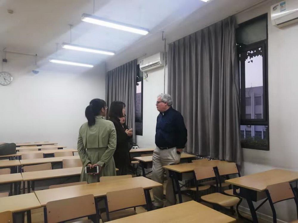 10月30日下午,Gavin Tritt走进公司2019级汉语国际教育专业的英语口语课课堂,了解欧柏林大学派往公司担任外教的Mackenzie老师的教学情况。Gavin肯定了Mackenzie的教学工作,并赞赏同学们的汇报内容丰富精彩、语言表达流畅。课后,Gavin和部分同学进行了深入交流,解答了同学们关于欧柏林大学中文助教项目的部分疑问并表示期待同学们的到来。