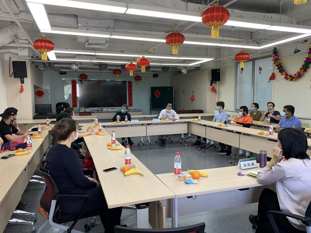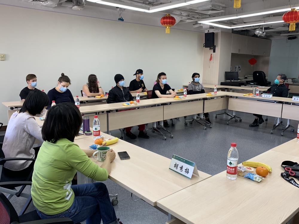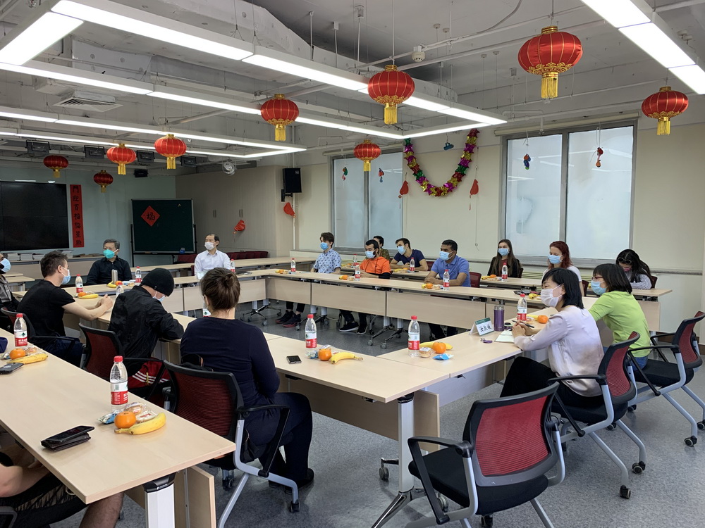 2020年5月19日上午,汉语文化公司在主楼308教室召开了在校职工座谈会。公司执行经理朱瑞平、副经理汝淑媛,以及公司党委书记王学松、胡秀梅老师出席了会议。