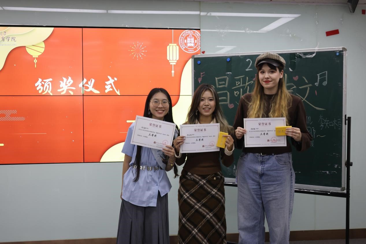 11月28日下午,由太阳成集团tyc234cc主办的太阳成集团tyc234cc国际员工“唱歌学中文”比赛在主楼B308圆满举办。来自北师大4个公司9个国家共15名职工登台现场演唱,近百位国际员工到现场观看,378人参与了线上“最具人气奖”投票。国际交流与合作处职工办公室教师刘欣雨出席本次活动,刘一杉、卢华岩、李涣、彭金玉、徐棠等几位老师担任本次比赛评委。来自越南的阮玄英和来自美国的和道担任主持人。