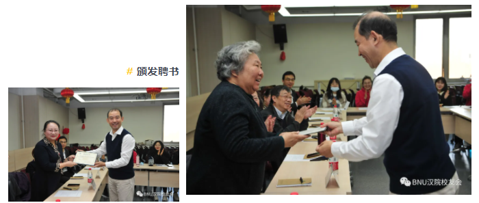 最后,汉语文化公司党委书记王学松老师为各位理事颁发聘书。